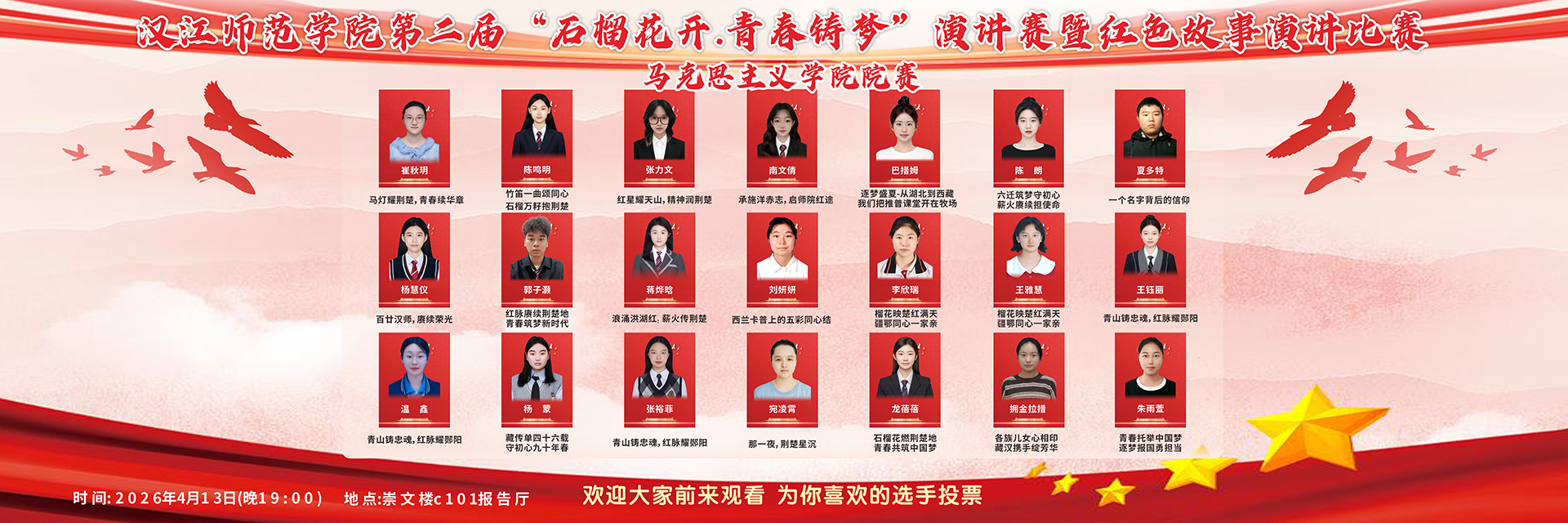 2026-04-17石榴花开・青春铸梦(荆楚学子道中华 青春托举中国梦)” 演讲赛暨红色故事演讲比赛院赛顺利举办