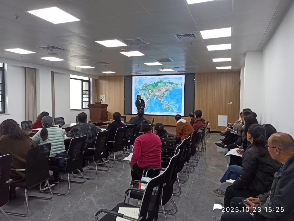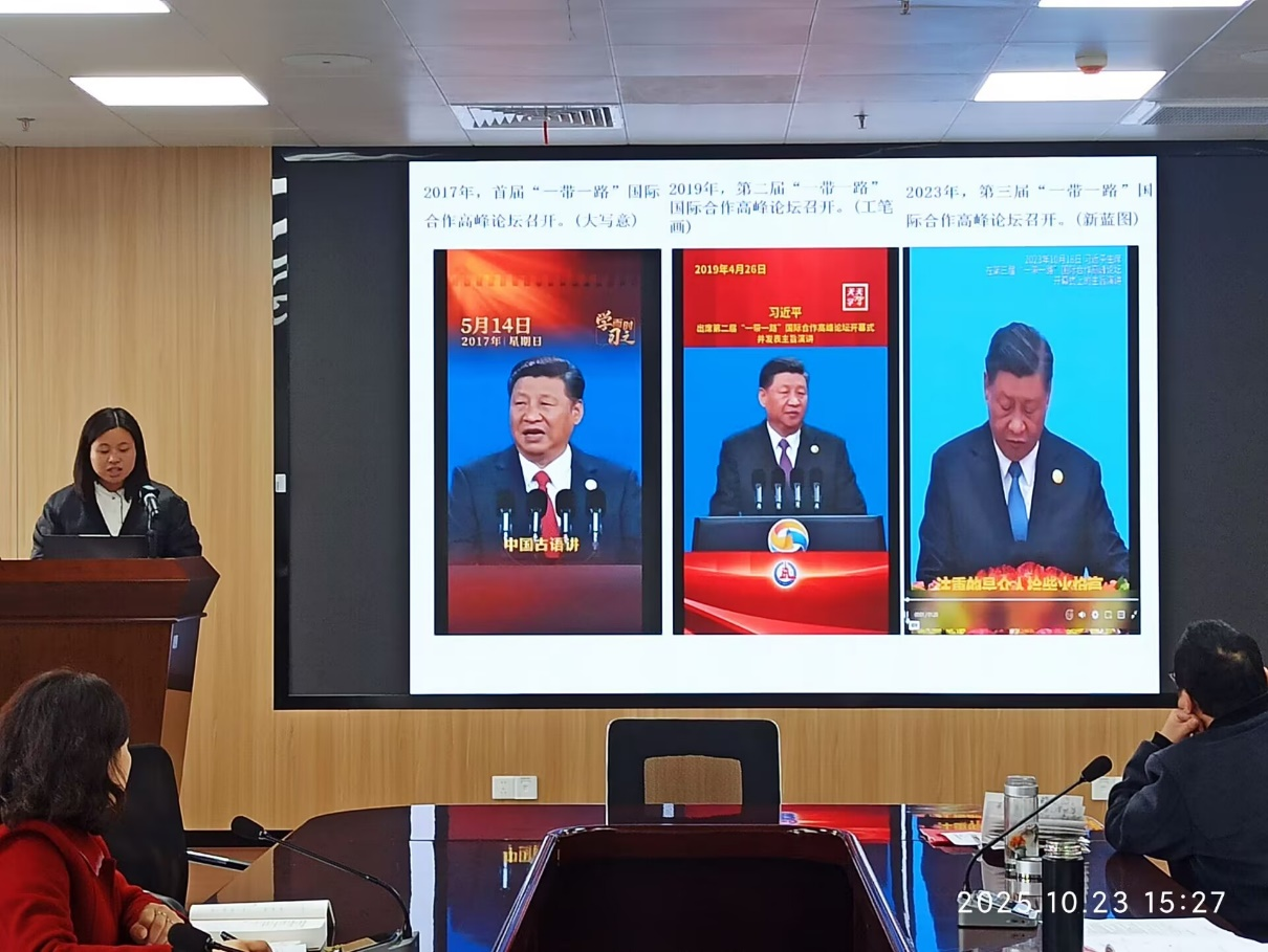 2025年10月23日下午,马克思主义学院在求真楼A604会议室举行了公开示范课教学展示,主题为《马克思主义政治经济学概论》第十八章“共建‘一带一路’与推动共建人类命运共同体”,由刘宝平博士主讲,系统阐释了“一带一路”倡议的缘起、内容与成效。