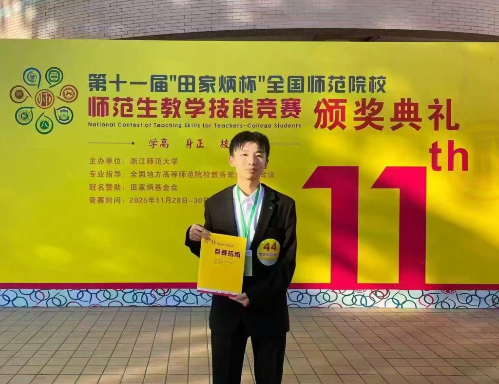 我是思政专业2302班学生王家乐。田家炳全国师范生技能竞赛一等奖的荣誉最终被握在手中,回望这条来时路——那长达四个月的备赛征程,与大学三年来点滴的沉淀彼此交织。那些伏案深耕的日夜、破局破茧的瞬间,以及终于被看见、被肯定的释然,如今都沉甸甸地化为成长中最坚实的部分。作为学校历史上首位获得此项荣誉的学生,此刻,我想用文字轻轻叩响这段时光的门扉,回溯那以初心为灯、以坚持为风的逐梦之旅。