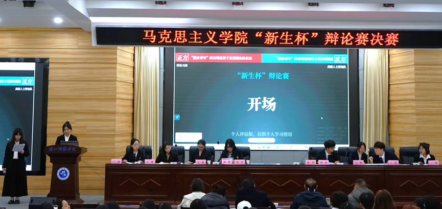 11月30日下午15:30,马克思主义学院于崇文楼C101举办”新生杯”辩论赛决赛。周进芳,胡文江,孙景强三位老师及学生代表徐殷琴子出席此次比赛并担任评委。