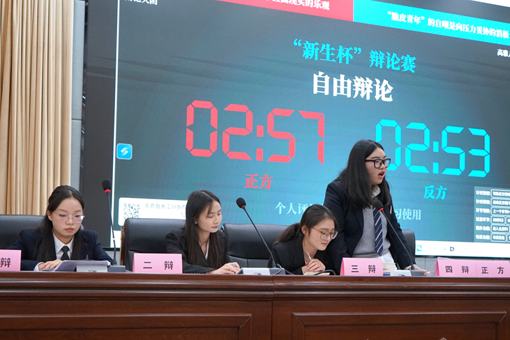 双方进行了激烈的角逐,引经据典,精彩纷呈。正方认为“脆皮青年”的自嘲是勇于直面现实的乐观,是从认清到直面的一种幽默应对机制,这种自我解嘲既是对自身困境的清醒认知,也是有效的心理调适方式。反方认为“脆皮青年”的自嘲是向压力妥协的消极,用虚假乐观的表象掩盖逃避本质的体现,既削弱了自身的能动性,也传播了负面摆烂的风气。