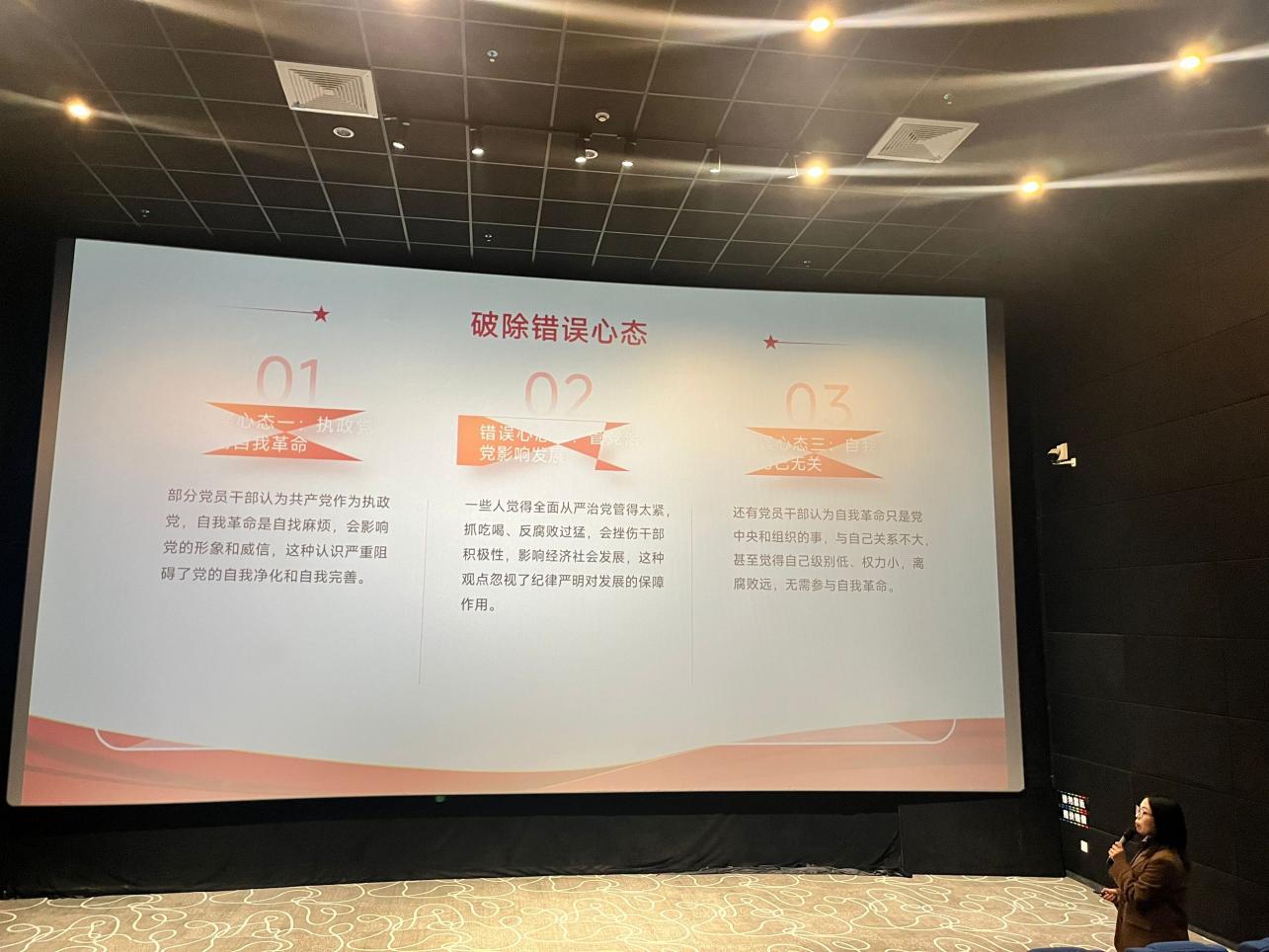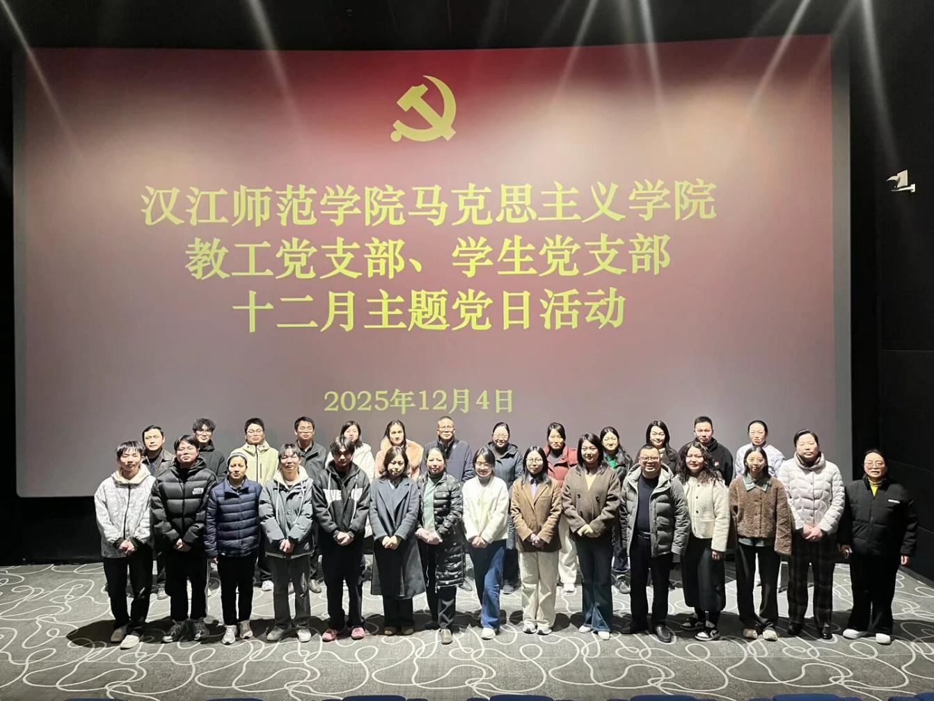 12月4日下午,马克思主义学院全体党员师生赴茅箭区红色电影文化馆,开展十二月主题党日暨“马院有礼”党性教育观影活动。活动分“理论深学”与“光影铸魂”两个篇章,让一堂“大思政课”在银幕内外同步开讲。