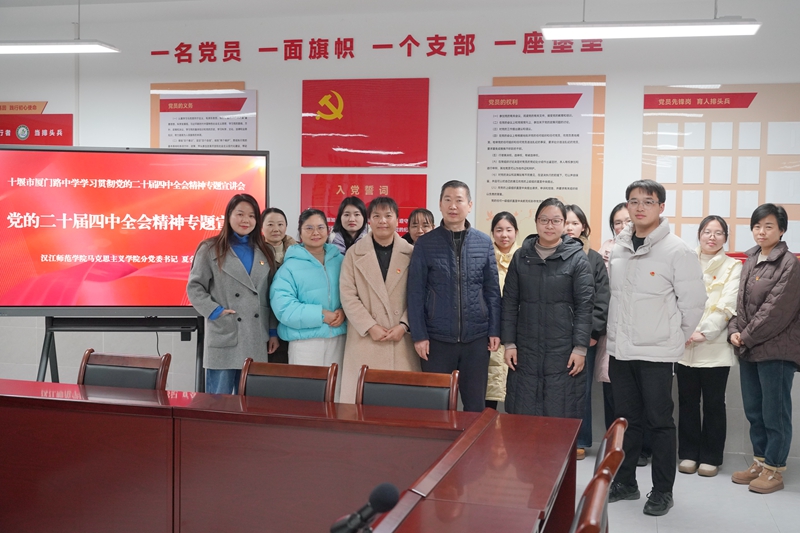 12月15日,汉江师范学院马克思主义学院党委书记夏金元率队赴十堰市厦门路中学,围绕大中小学思政教育一体化建设开展调研,并宣讲党的二十届四中全会精神。厦门路中学领导班子全体党员及无课教职工参加活动。