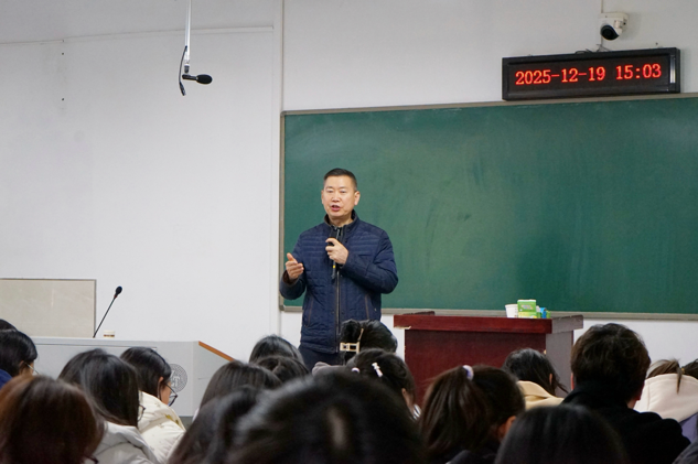 12月19日下午,学院在文科楼A313举行党的二十届四中全会精神专题宣讲暨“马院有礼”党建品牌宣讲。学院党委书记夏金元担任主讲人,以“青春逐梦现代化 挺膺担当强国路”为主题,为在场参与的学生党员、青马班学员、2025级班导生、25级辩论队的同学们带来了一场兼具理论深度与实践指导意义的辅导报告,推动全会精神、学院党建品牌入脑入心。