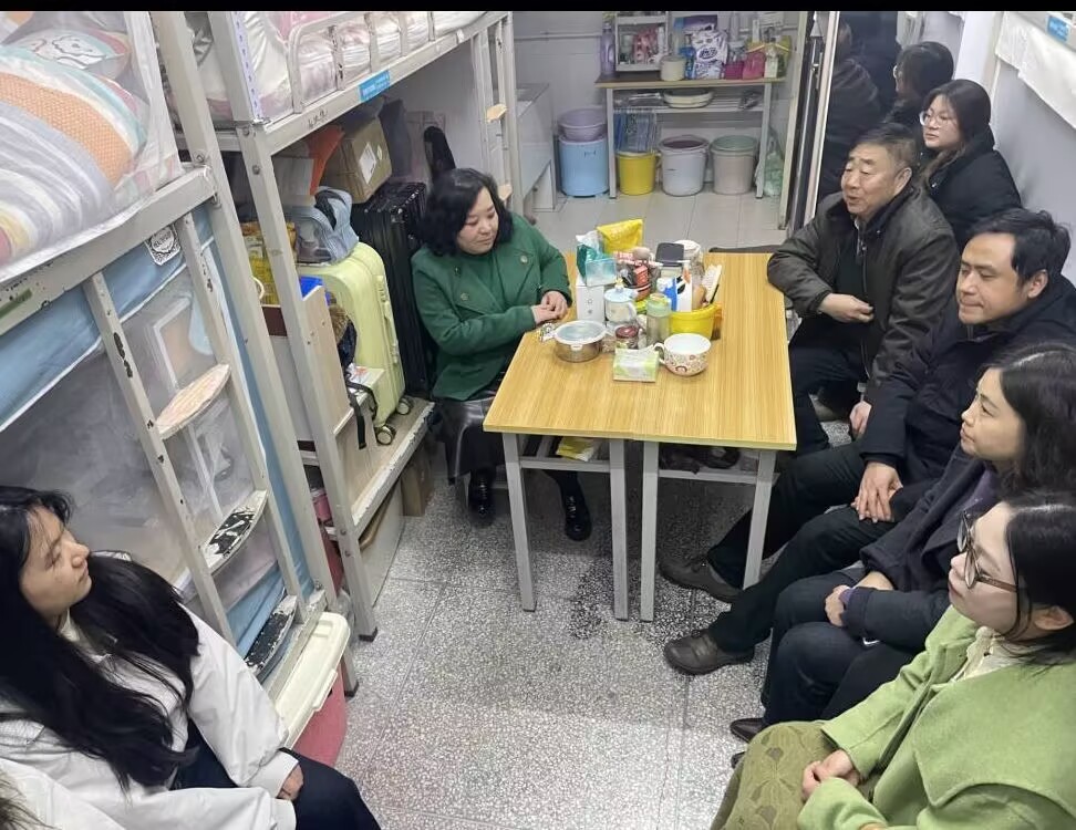 在大四年级党员代表的“星级文明宿舍”,着重关注学业进展与职业发展。针对考研初试后的焦虑情绪,秦院长细致询问考试感受与预估情况并给出针对性建议;围绕毕业论文,老师们了解选题进展、耐心解答疑难,鼓励大家兼顾创新与理论实践结合,严守学术规范;谈及就业,秦院长询问求职意向与困难,介绍形势政策,引导树立正确择业观。走访中,老师们还查看了寝室卫生与安全情况,叮嘱同学们保持环境整洁、筑牢安全底线。