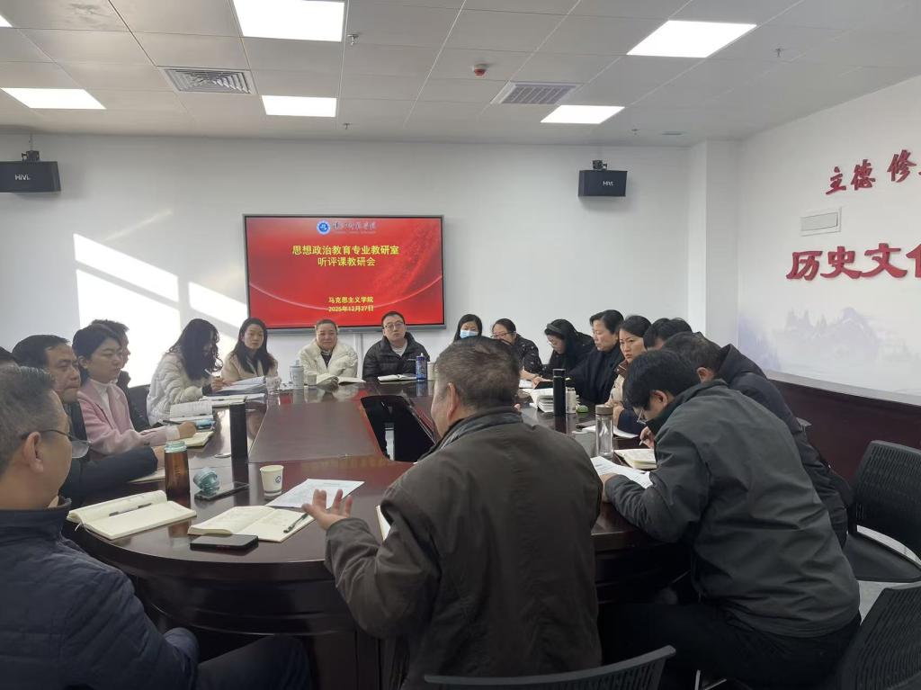 为深入落实师范类专业认证要求,持续提升课堂教学质量,12月27日,思想政治教育专业教研室召开专题听课评课教研会,教研室全体专任教师参加此次教研活动。学院荣誉院长秦在东、党委书记夏金元、教学副院长王君参加,会议由思想政治教育专业负责人符俊主持。